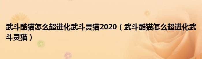 大家好,小安來為大家講解下。武斗酷貓怎么超進化武斗靈貓2020,武斗酷貓怎么超進化武斗靈貓很多人還不知道,現在讓我們一起來看看吧!