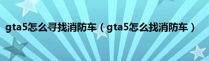 大家好,小安來為大家講解下。gta5怎么尋找消防車,gta5怎么找消防車很多人還不知道,現在讓我們一起來看看吧!