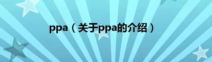 大家好,小安來為大家解答以上的問題。ppa,關于ppa的介紹很多人還不知道,現在讓我們一起來看看吧!
