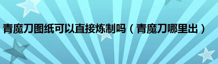 大家好,小安來為大家講解下。青魔刀圖紙可以直接煉制嗎,青魔刀哪里出很多人還不知道,現(xiàn)在讓我們一起來看看吧!