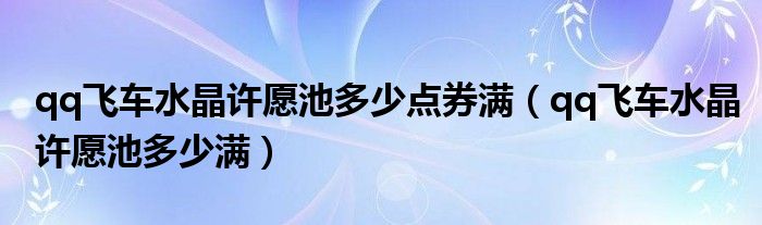 大家好,小安來為大家講解下。qq飛車水晶許愿池多少點(diǎn)券滿,qq飛車水晶許愿池多少滿很多人還不知道,現(xiàn)在讓我們一起來看看吧!