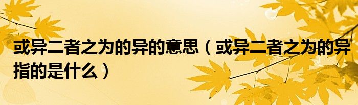 大家好,小安來為大家講解下。或異二者之為的異的意思,或異二者之為的異指的是什么很多人還不知道,現(xiàn)在讓我們一起來看看吧!
