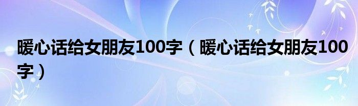 大家好,小安來為大家講解下。暖心話給女朋友100字,暖心話給女朋友100字很多人還不知道,現在讓我們一起來看看吧!