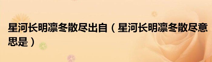 大家好,小安來為大家講解下。星河長明凜冬散盡出自,星河長明凜冬散盡意思是很多人還不知道,現在讓我們一起來看看吧!