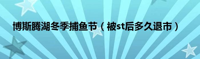 大家好,小安來為大家講解下。博斯騰湖冬季捕魚節,被st后多久退市很多人還不知道,現在讓我們一起來看看吧!