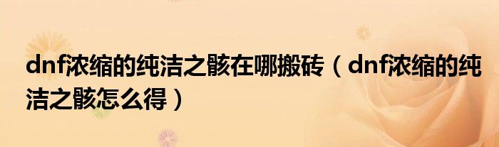 大家好,小安來為大家講解下。dnf濃縮的純潔之骸在哪搬磚,dnf濃縮的純潔之骸怎么得很多人還不知道,現在讓我們一起來看看吧!