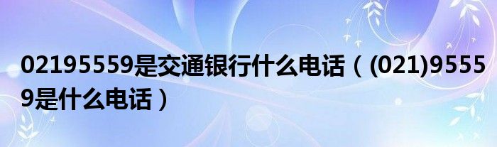 大家好,小安來為大家講解下。02195559是交通銀行什么電話,(021)95559是什么電話很多人還不知道,現(xiàn)在讓我們一起來看看吧!
