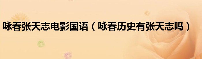 大家好,小安來為大家講解下。詠春張天志電影國語,詠春歷史有張天志嗎很多人還不知道,現在讓我們一起來看看吧!