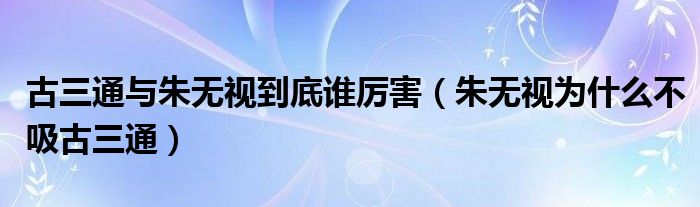 大家好,小安來為大家講解下。古三通與朱無視到底誰厲害,朱無視為什么不吸古三通很多人還不知道,現在讓我們一起來看看吧!