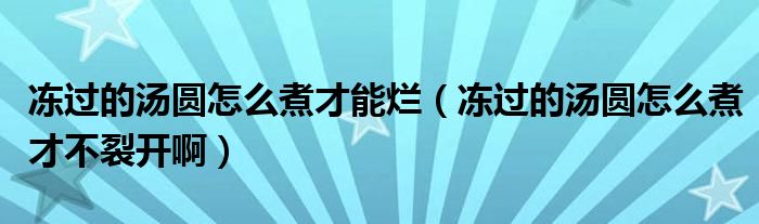 大家好,小安來為大家講解下。凍過的湯圓怎么煮才能爛,凍過的湯圓怎么煮才不裂開啊很多人還不知道,現在讓我們一起來看看吧!