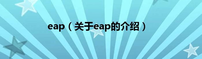 大家好,小安來為大家解答以上的問題。eap,關于eap的介紹很多人還不知道,現在讓我們一起來看看吧!