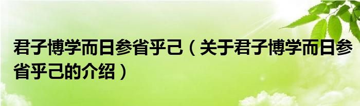 大家好,小安來為大家解答以上的問題。君子博學(xué)而日參省乎己,關(guān)于君子博學(xué)而日參省乎己的介紹很多人還不知道,現(xiàn)在讓我們一起來看看吧!