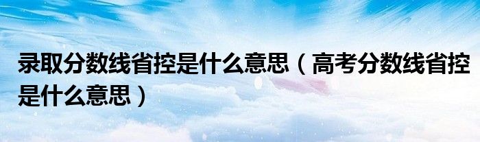 大家好,小安來為大家講解下。錄取分數線省控是什么意思,高考分數線省控是什么意思很多人還不知道,現在讓我們一起來看看吧!