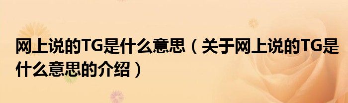 大家好,小安來為大家解答以上的問題。網上說的TG是什么意思,關于網上說的TG是什么意思的介紹很多人還不知道,現在讓我們一起來看看吧!