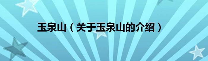 大家好,小安來為大家解答以上的問題。玉泉山,關于玉泉山的介紹很多人還不知道,現在讓我們一起來看看吧!