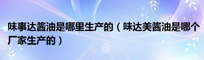 大家好,小安來為大家講解下。味事達醬油是哪里生產的,味達美醬油是哪個廠家生產的很多人還不知道,現在讓我們一起來看看吧!
