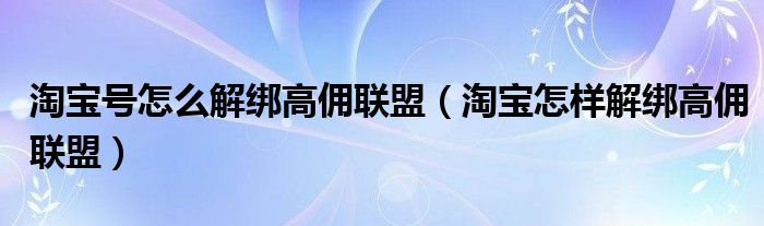 大家好,小安來為大家講解下。淘寶號怎么解綁高傭聯盟,淘寶怎樣解綁高傭聯盟很多人還不知道,現在讓我們一起來看看吧!