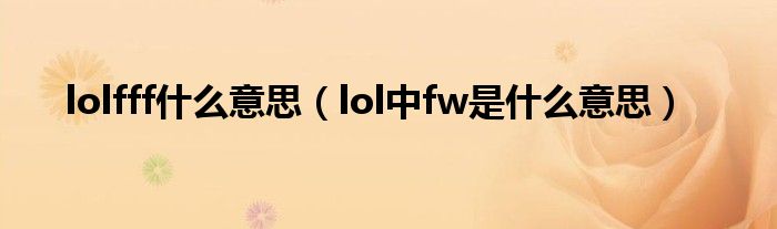 大家好,小安來(lái)為大家講解下。lolfff什么意思,lol中fw是什么意思很多人還不知道,現(xiàn)在讓我們一起來(lái)看看吧!