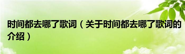 大家好,小安來為大家解答以上的問題。時間都去哪了歌詞,關于時間都去哪了歌詞的介紹很多人還不知道,現在讓我們一起來看看吧!