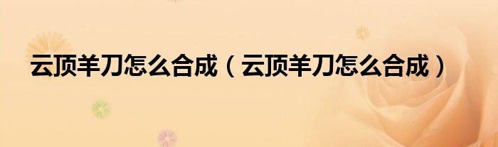 大家好,小安來為大家講解下。云頂羊刀怎么合成,云頂羊刀怎么合成很多人還不知道,現在讓我們一起來看看吧!