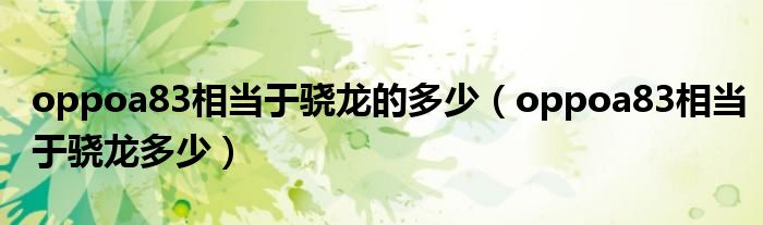 大家好,小安來為大家講解下。oppoa83相當于驍龍的多少,oppoa83相當于驍龍多少很多人還不知道,現在讓我們一起來看看吧!