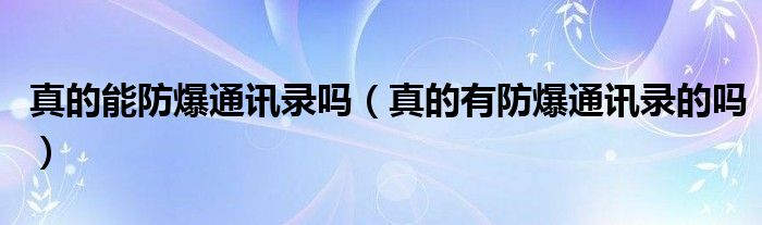 大家好,小安來為大家講解下。真的能防爆通訊錄嗎,真的有防爆通訊錄的嗎很多人還不知道,現在讓我們一起來看看吧!