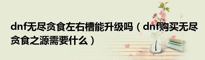 大家好,小安來為大家講解下。dnf無盡貪食左右槽能升級嗎,dnf購買無盡貪食之源需要什么很多人還不知道,現在讓我們一起來看看吧!
