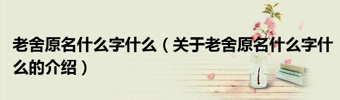 大家好,小安來為大家解答以上的問題。老舍原名什么字什么,關于老舍原名什么字什么的介紹很多人還不知道,現在讓我們一起來看看吧!
