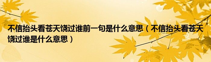 大家好,小安來(lái)為大家講解下。不信抬頭看蒼天饒過(guò)誰(shuí)前一句是什么意思,不信抬頭看蒼天饒過(guò)誰(shuí)是什么意思很多人還不知道,現(xiàn)在讓我們一起來(lái)看看吧!