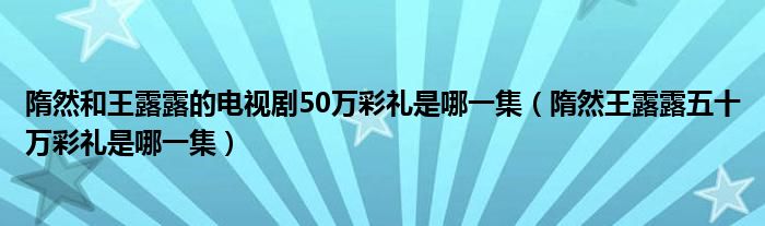 大家好,小安來為大家講解下。隋然和王露露的電視劇50萬彩禮是哪一集,隋然王露露五十萬彩禮是哪一集很多人還不知道,現在讓我們一起來看看吧!