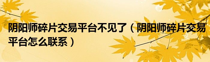 大家好,小安來(lái)為大家講解下。陰陽(yáng)師碎片交易平臺(tái)不見(jiàn)了,陰陽(yáng)師碎片交易平臺(tái)怎么聯(lián)系很多人還不知道,現(xiàn)在讓我們一起來(lái)看看吧!
