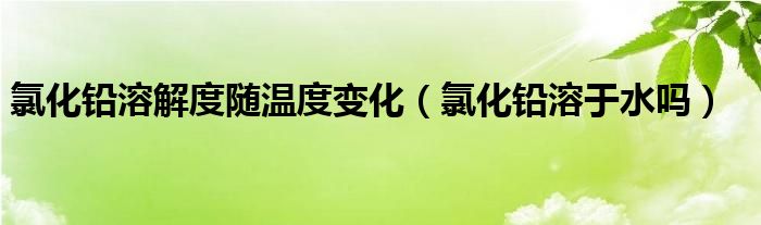 大家好,小安來為大家講解下。氯化鉛溶解度隨溫度變化,氯化鉛溶于水嗎很多人還不知道,現在讓我們一起來看看吧!