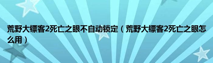 大家好,小安來為大家講解下?;囊按箸S客2死亡之眼不自動(dòng)鎖定,荒野大鏢客2死亡之眼怎么用很多人還不知道,現(xiàn)在讓我們一起來看看吧!
