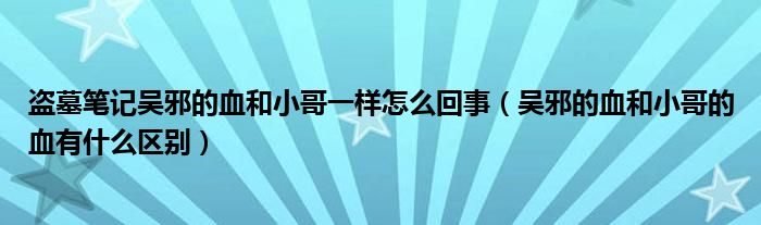 大家好,小安來為大家講解下。盜墓筆記吳邪的血和小哥一樣怎么回事,吳邪的血和小哥的血有什么區別很多人還不知道,現在讓我們一起來看看吧!