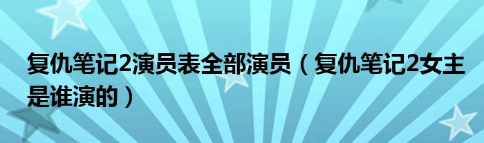 大家好,小安來為大家講解下。復仇筆記2演員表全部演員,復仇筆記2女主是誰演的很多人還不知道,現在讓我們一起來看看吧!