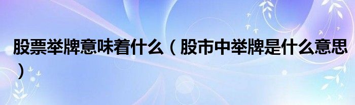 大家好,小安來為大家講解下。股票舉牌意味著什么,股市中舉牌是什么意思很多人還不知道,現(xiàn)在讓我們一起來看看吧!