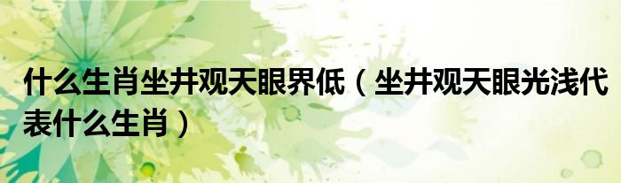 大家好,小安來為大家講解下。什么生肖坐井觀天眼界低,坐井觀天眼光淺代表什么生肖很多人還不知道,現在讓我們一起來看看吧!