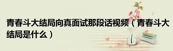 大家好,小安來為大家講解下。青春斗大結局向真面試那段話視頻,青春斗大結局是什么很多人還不知道,現在讓我們一起來看看吧!