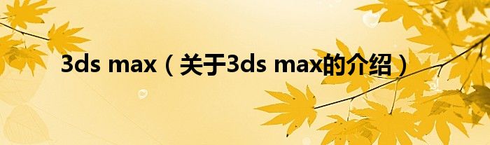 大家好,小安來為大家解答以上的問題。3ds max,關于3ds max的介紹很多人還不知道,現在讓我們一起來看看吧!