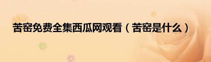 大家好,小安來為大家講解下。苦窯免費(fèi)全集西瓜網(wǎng)觀看,苦窯是什么很多人還不知道,現(xiàn)在讓我們一起來看看吧!