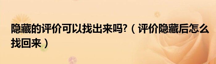 大家好,小安來為大家講解下。隱藏的評價(jià)可以找出來嗎?,評價(jià)隱藏后怎么找回來很多人還不知道,現(xiàn)在讓我們一起來看看吧!