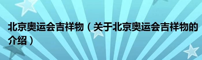 大家好,小安來為大家解答以上的問題。北京奧運會吉祥物,關(guān)于北京奧運會吉祥物的介紹很多人還不知道,現(xiàn)在讓我們一起來看看吧!