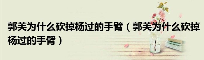 大家好,小安來為大家講解下。郭芙為什么砍掉楊過的手臂,郭芙為什么砍掉楊過的手臂很多人還不知道,現在讓我們一起來看看吧!