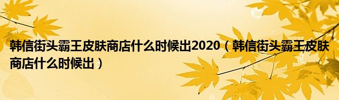 大家好,小安來為大家講解下。韓信街頭霸王皮膚商店什么時候出2020,韓信街頭霸王皮膚商店什么時候出很多人還不知道,現在讓我們一起來看看吧!
