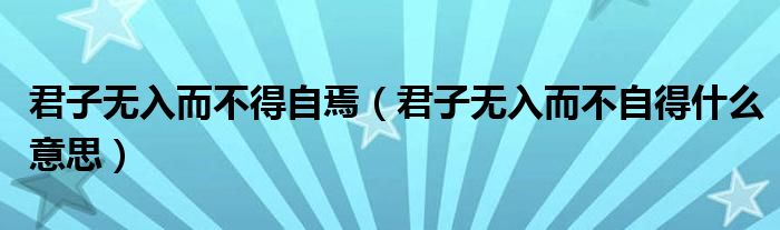 大家好,小安來為大家講解下。君子無入而不得自焉,君子無入而不自得什么意思很多人還不知道,現在讓我們一起來看看吧!