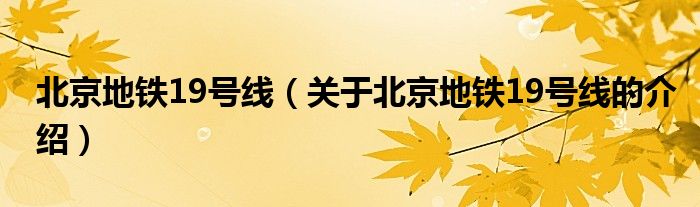 大家好,小安來為大家解答以上的問題。北京地鐵19號線,關于北京地鐵19號線的介紹很多人還不知道,現在讓我們一起來看看吧!
