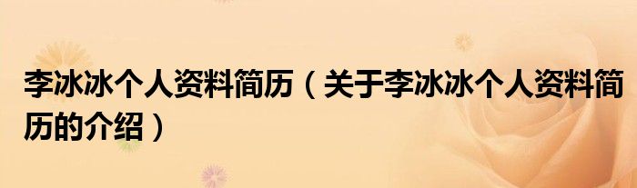 大家好,小安來為大家解答以上的問題。李冰冰個人資料簡歷,關于李冰冰個人資料簡歷的介紹很多人還不知道,現(xiàn)在讓我們一起來看看吧!