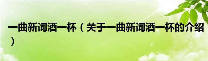 大家好,小安來為大家解答以上的問題。一曲新詞酒一杯,關于一曲新詞酒一杯的介紹很多人還不知道,現在讓我們一起來看看吧!