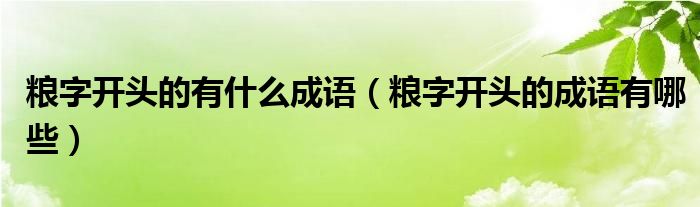 大家好,小安來為大家講解下。糧字開頭的有什么成語,糧字開頭的成語有哪些很多人還不知道,現在讓我們一起來看看吧!