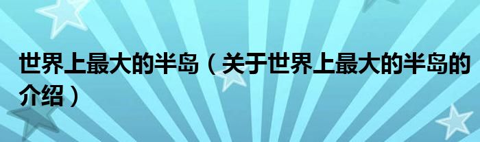 大家好,小安來為大家解答以上的問題。世界上最大的半島,關于世界上最大的半島的介紹很多人還不知道,現在讓我們一起來看看吧!